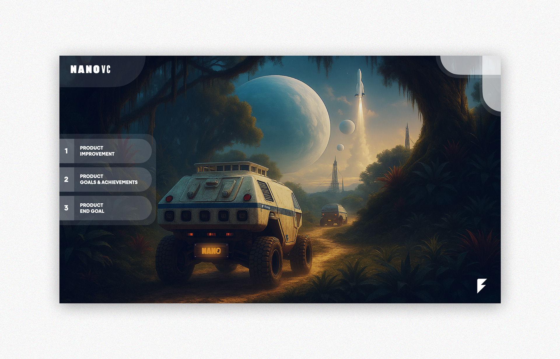 Sample of presentation pages for a financing company I work for who's theme is space exploration.