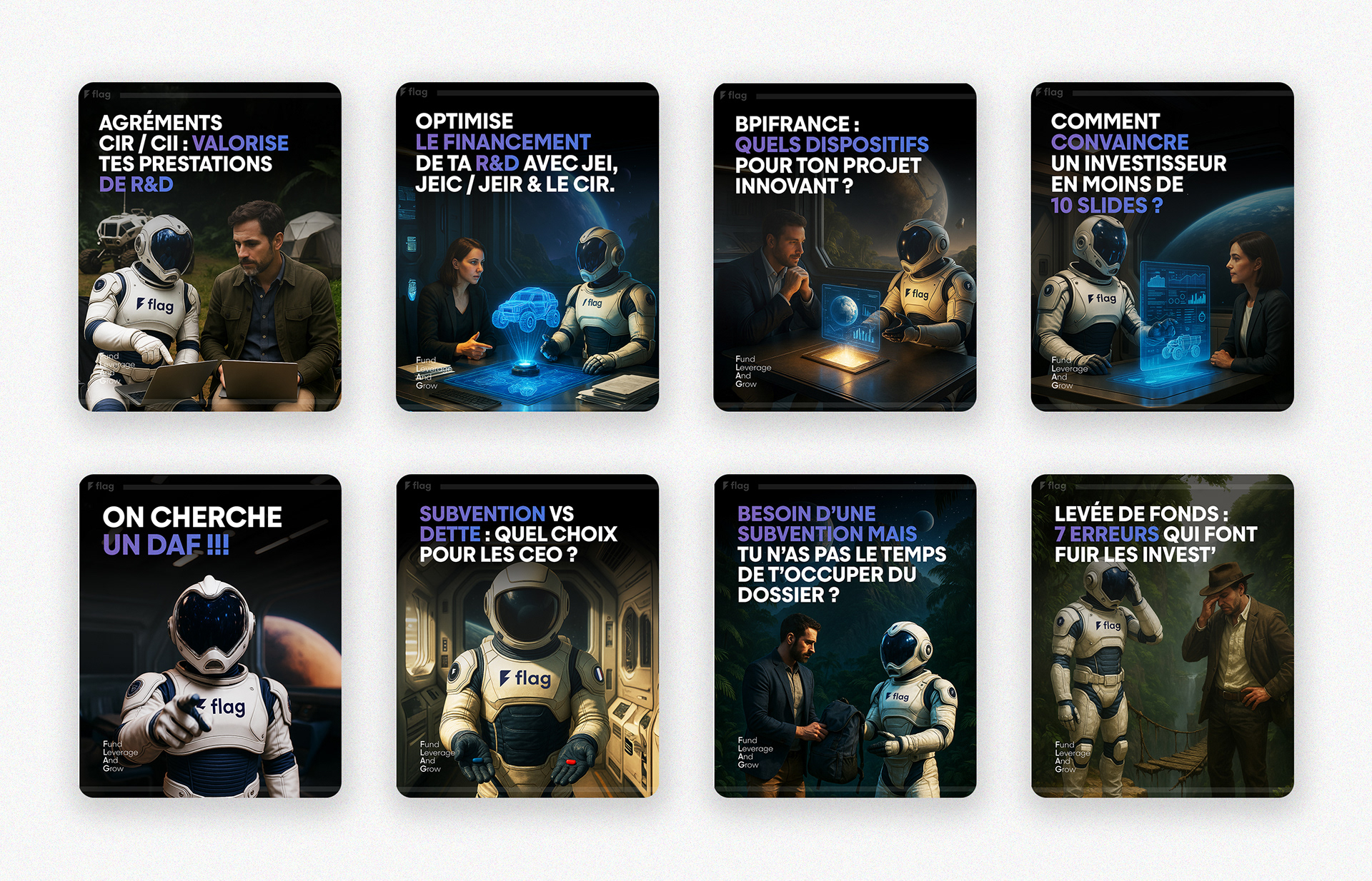These are visuals used for the linkedin posts of one of my client Flag.finance a financing company for startups.